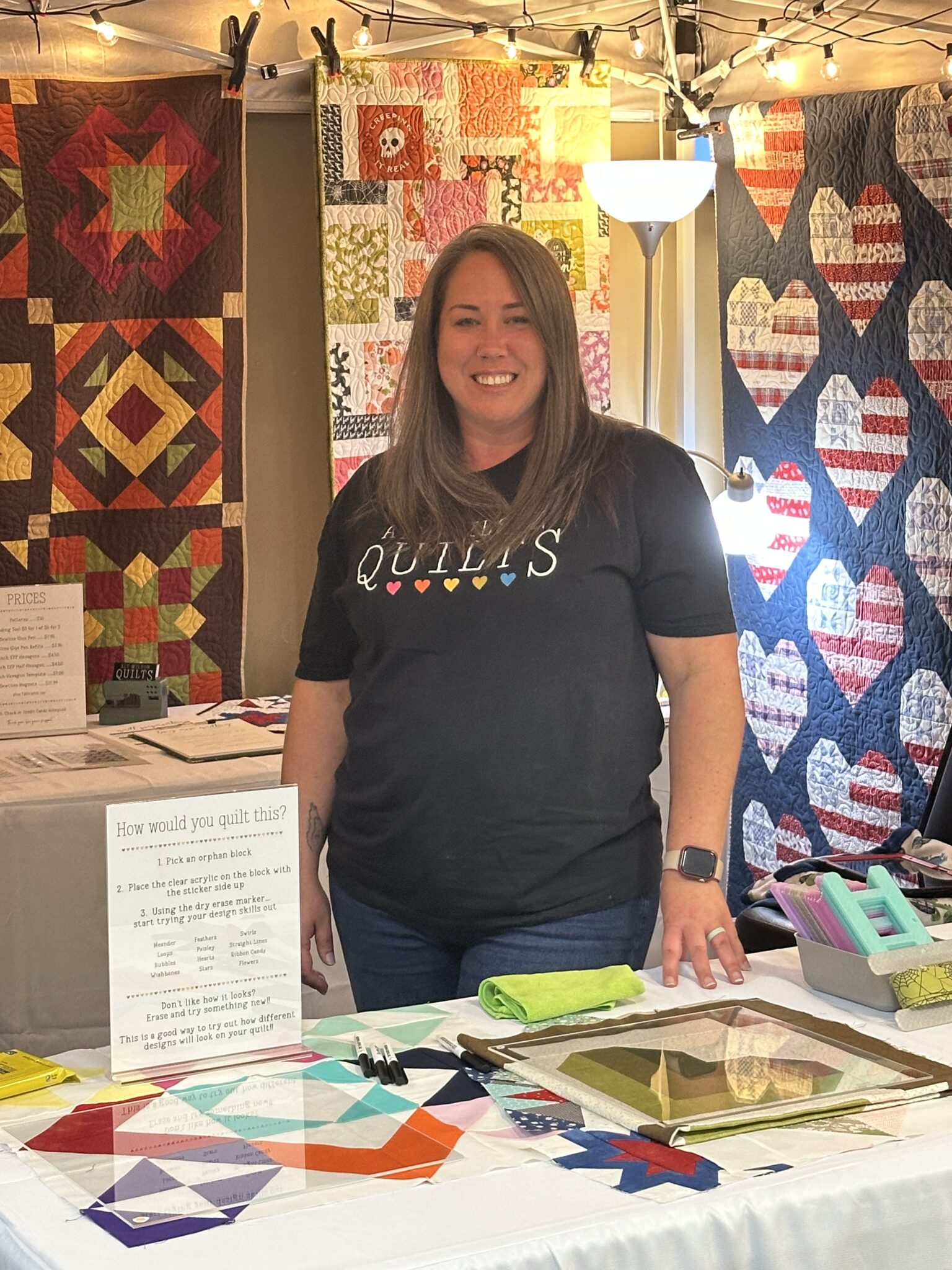 That’s me! The owner of Aly Wilson Quilts. I may be the sole quilter behind the magic; but it is a family operation. My amazing husband, Shawn, of over a quarter of a century got the side job he never knew he wanted as my personal assistant and title of “Best Quilty Husband”. The fact that he knows terms like “Fussy Cut” and can name off quilty designs without ever having sewn a stitch makes my heart happy. Our team wouldn’t be complete without our amazing teenage daughter. She likes to stay behind the scenes, pick out and place fabrics and help with laundry so I can balance life. She is slowly starting to help me with the tech side of things which I am grateful for. Our family is definitely not complete without of fur babies running around and living their best spoiled life. My family is everything to me and I am grateful for them each and every day.